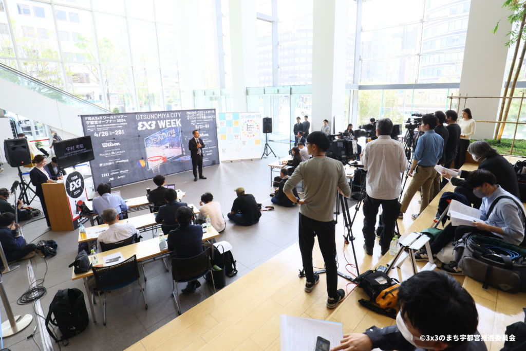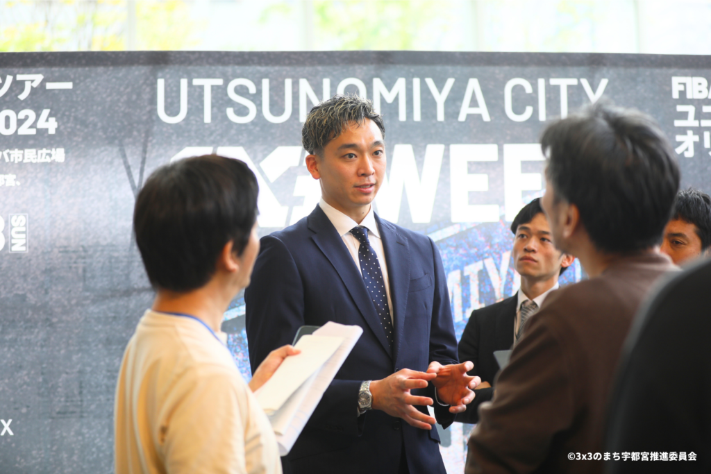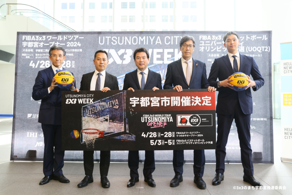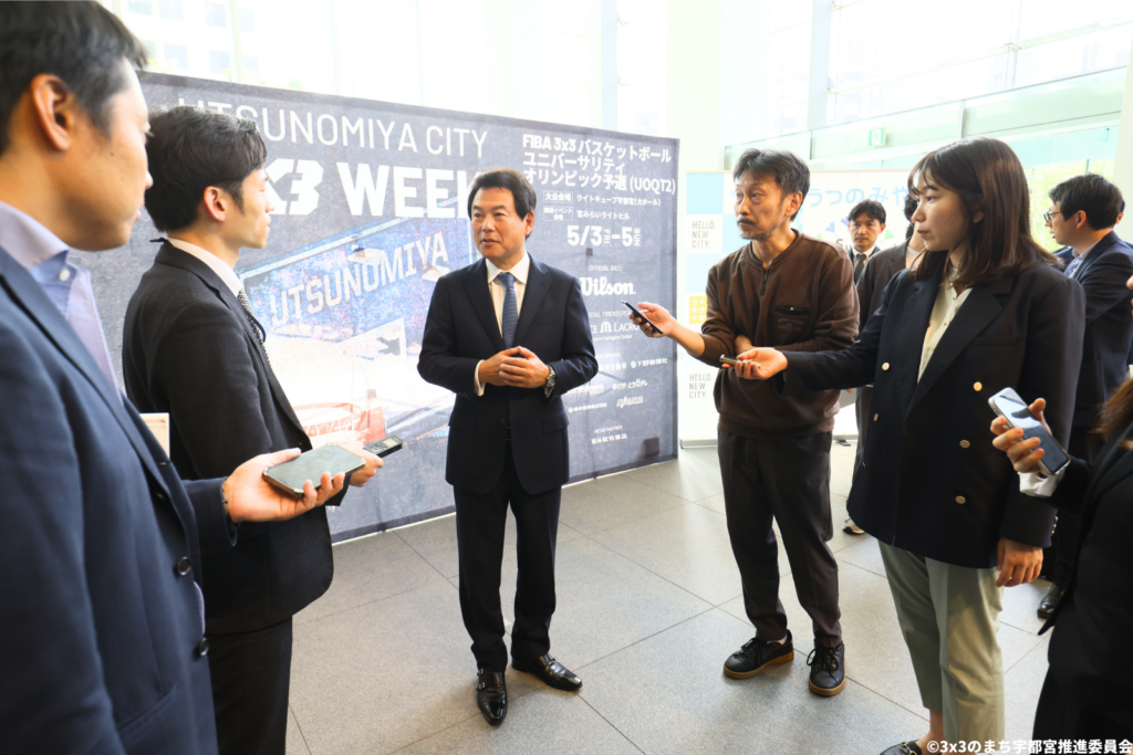 さらに、同大会を誘致した宇都宮市の佐藤栄一市長も登壇し、「大いに世界に向けてFIBA 3×3の魅力と、それぞれの国を代表して戦うチームをしっかりと伝えたいと考えております。これからも宇都宮市は、3×3のまち宇都宮として、しっかりと役割を果たしてまいりたいと思います。そのためのパリオリンピック予選大会を成功させるとともに、4月と5月の3×3を“3x3WEEK”といたしまして、最大限の力を発揮してまいります。」とスピーチ。